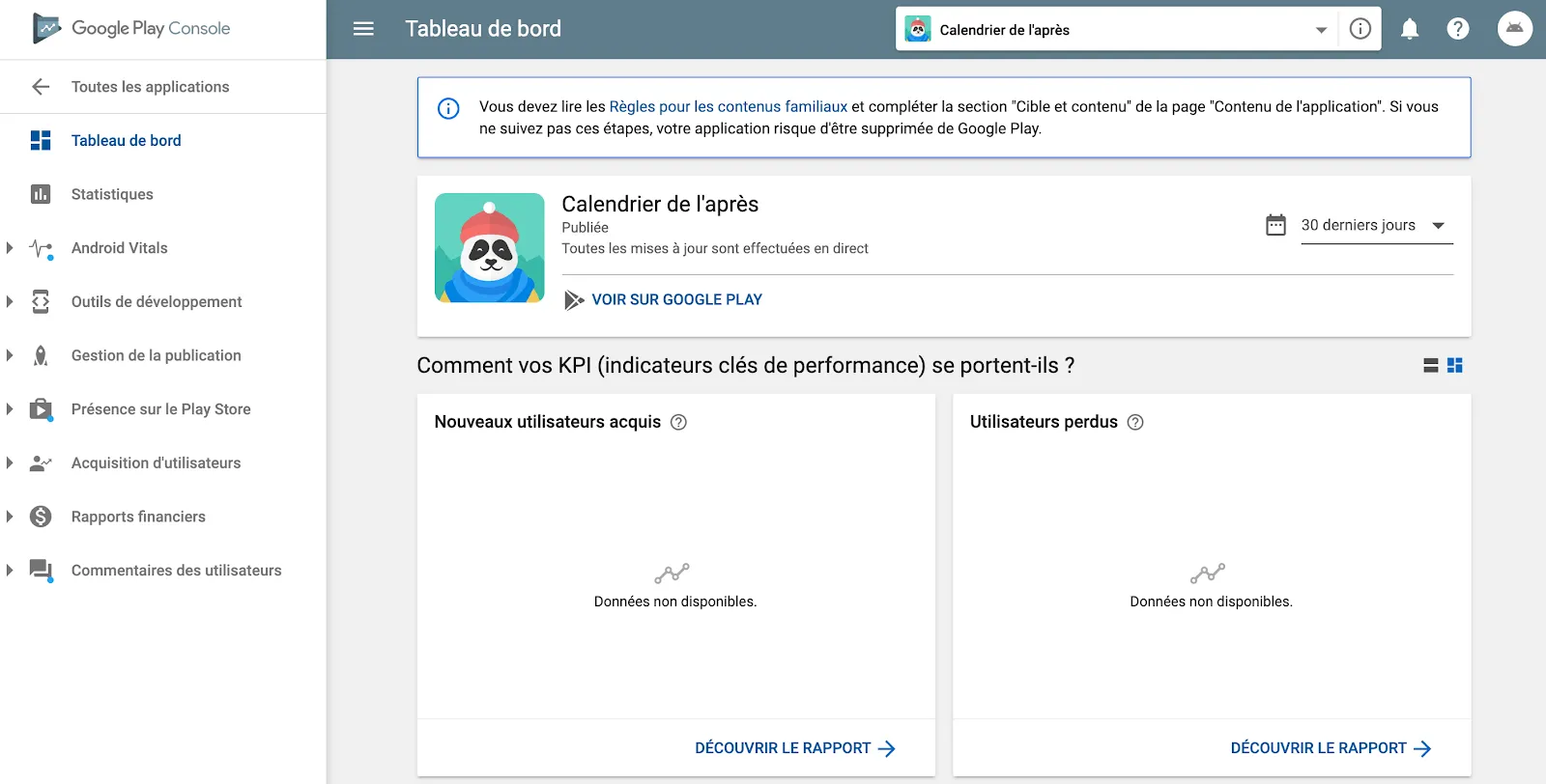 Remember that you have a URL for your app on Google Play. Even if your app isn’t appearing in the search results, it still has its page and you can use the URL directly in your acquisition campaigns targeting new users. The URL is found in your Google Play dashboard, by clicking on the button SEE ON GOOGLE PLAY.