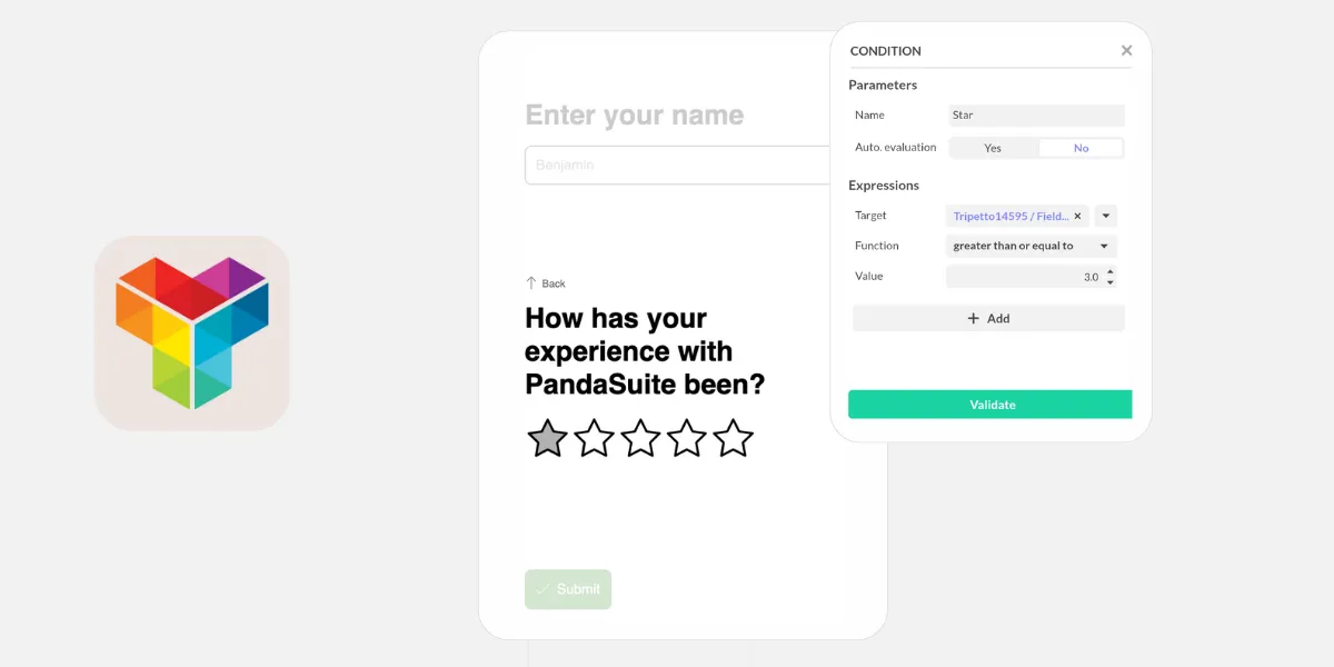 La force de Tripetto, c’est le 100% hors ligne. Ainsi vous pouvez afficher un formulaire et collecter des données sans connexion Internet. C’est notamment utile pour vos salons et visites terrain. La nouveauté de ce composant, c’est l’exposition des données et la possibilité de les réutiliser dans l’application via la liaison de données (data binding) ou une condition !
