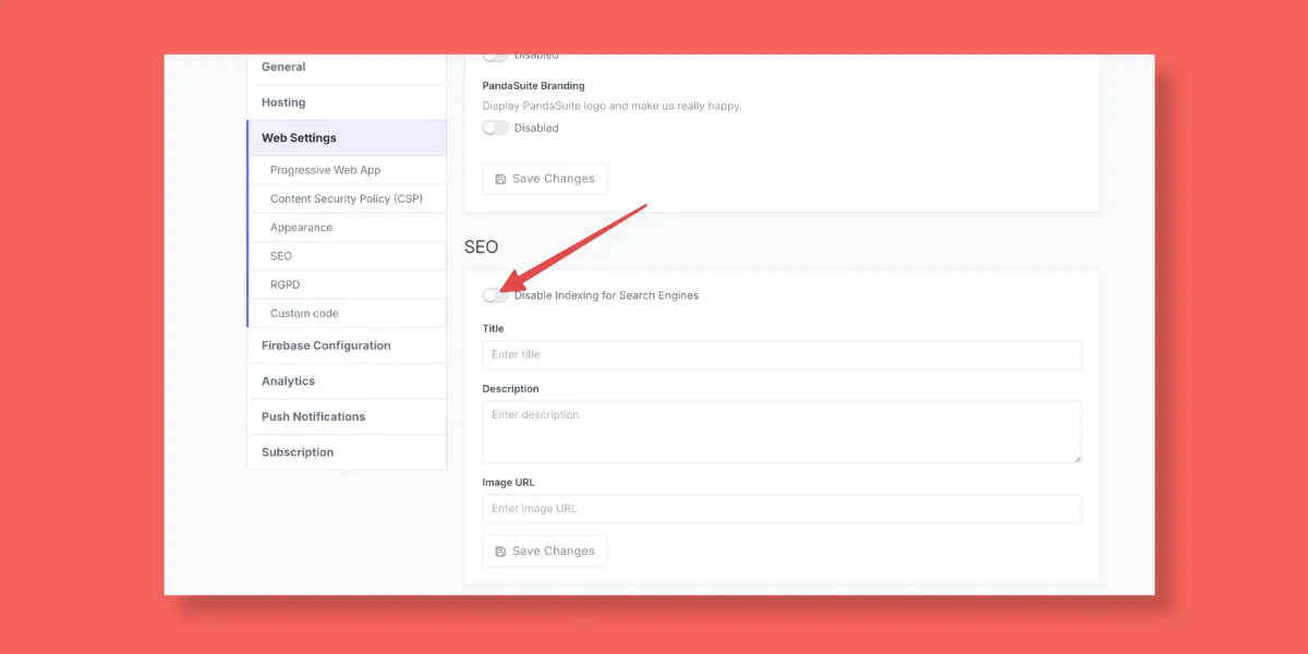 Vous avez maintenant la possibilité d’indexer ou non votre web app sur les moteurs de recherche. Si vous optez pour la visibilité, choisissez le titre, la description et l’image URL de votre web app.
