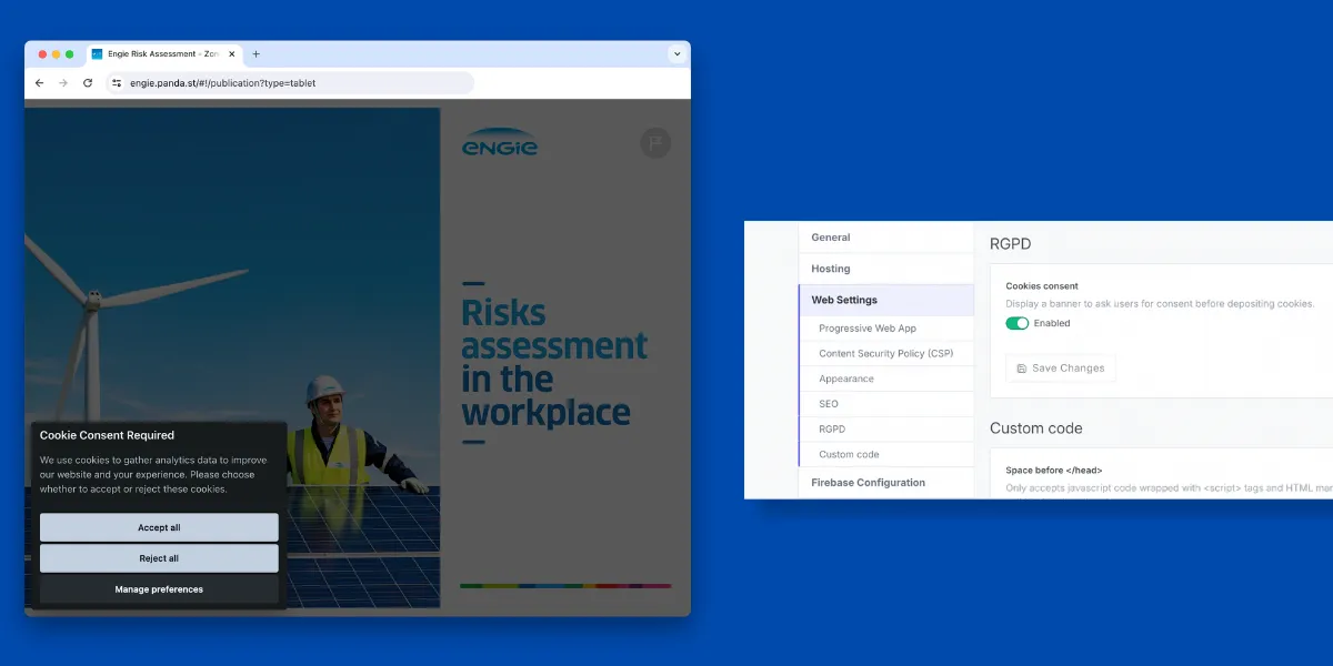 Vous avez désormais la possibilité d’afficher une bannière de consentement aux cookies dans vos web apps. Selon le RGPD, il est impératif d’obtenir le consentement de vos utilisateurs à partir du moment où vous collectez des données.