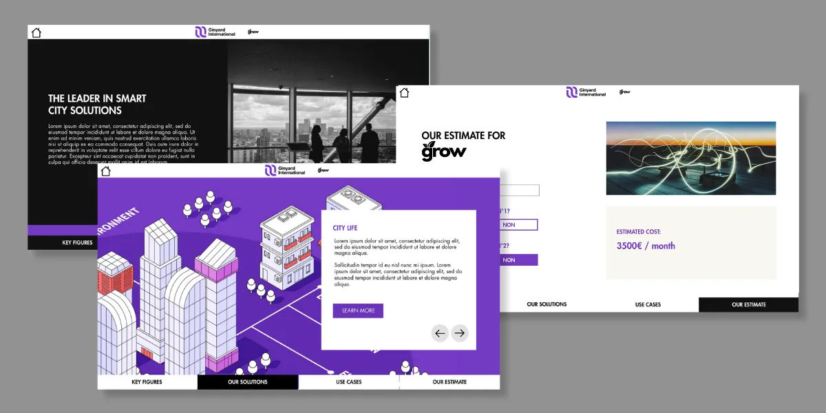 Découvrez une présentation qui met en avant votre discours commercial de manière visuelle et interactive. Personnalisez cette présentation avec le logo de chaque client et synchronisez les informations budgétaires grâce à une base Airtable reliée.