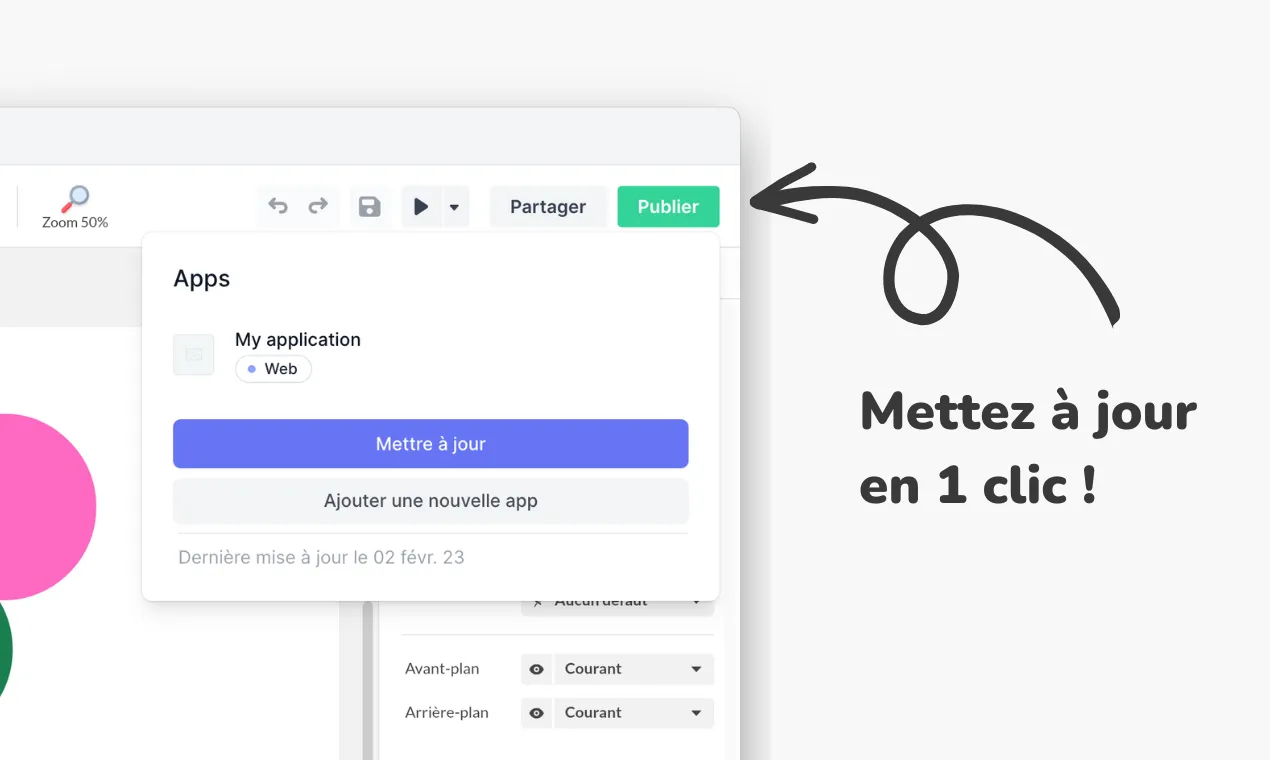 Quand votre projet est diffusé, vous avez la possibilité de mettre en production l’application en un clic depuis PandaSuite Studio. Pour rappel, la mise en production est l’action de mettre à jour une application déjà publiée. Jusqu’à présent, cette action se faisait depuis le dashboard.